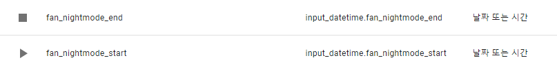 fan_night_mode_off는 야간 반복 모드 off시, script.fan_123을 reset시켜 주기 위함입니다.