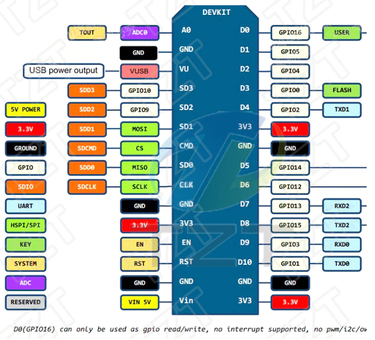구글링하면 쉽게 찾을 수 있는 nodemcu의 pin description이다.