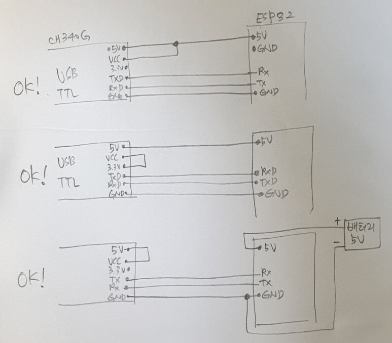 그러나, ESP32에 전원공급을 해야하니, USB의 5V를 ESP32의 5V로 연결을 해야한다.