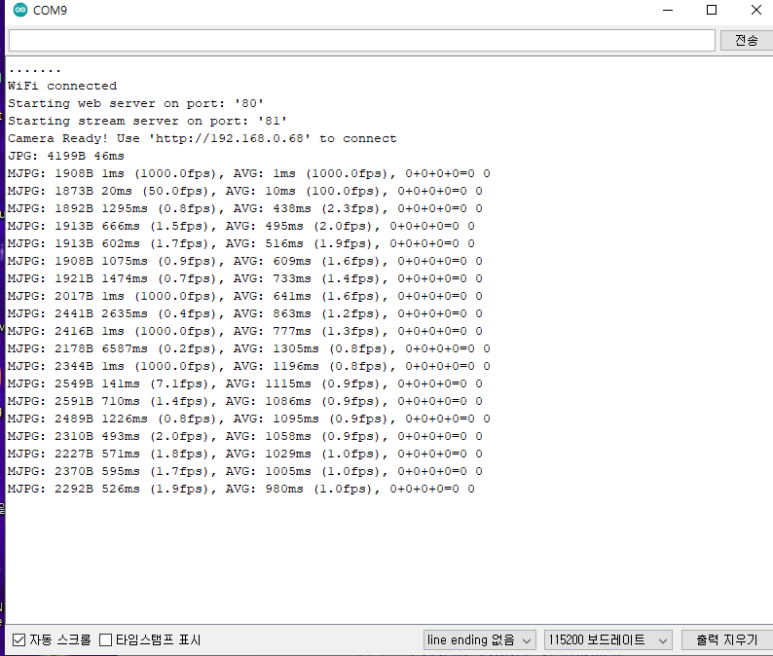 그리고, serial 모니터를 열어서 reset 버튼을 누르면