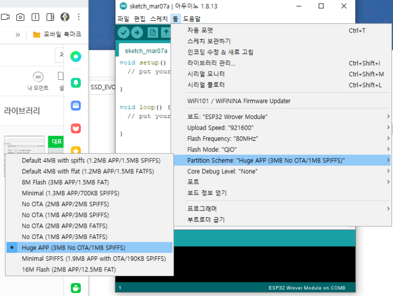 이제 아두이노에서 ESP32-cam의 보드 선택을 마쳤다.